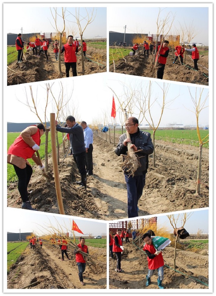 經過一個上午的辛勤勞動,兩長排整齊劃一的樹苗躍然眼前,特別是此次栽植的樹種為黃金槐,更是一片春意盎然,美不勝收。