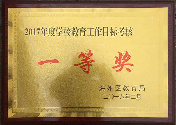 崗埠中心小學榮獲2017年度海州區學校教育工作目標考核一等獎