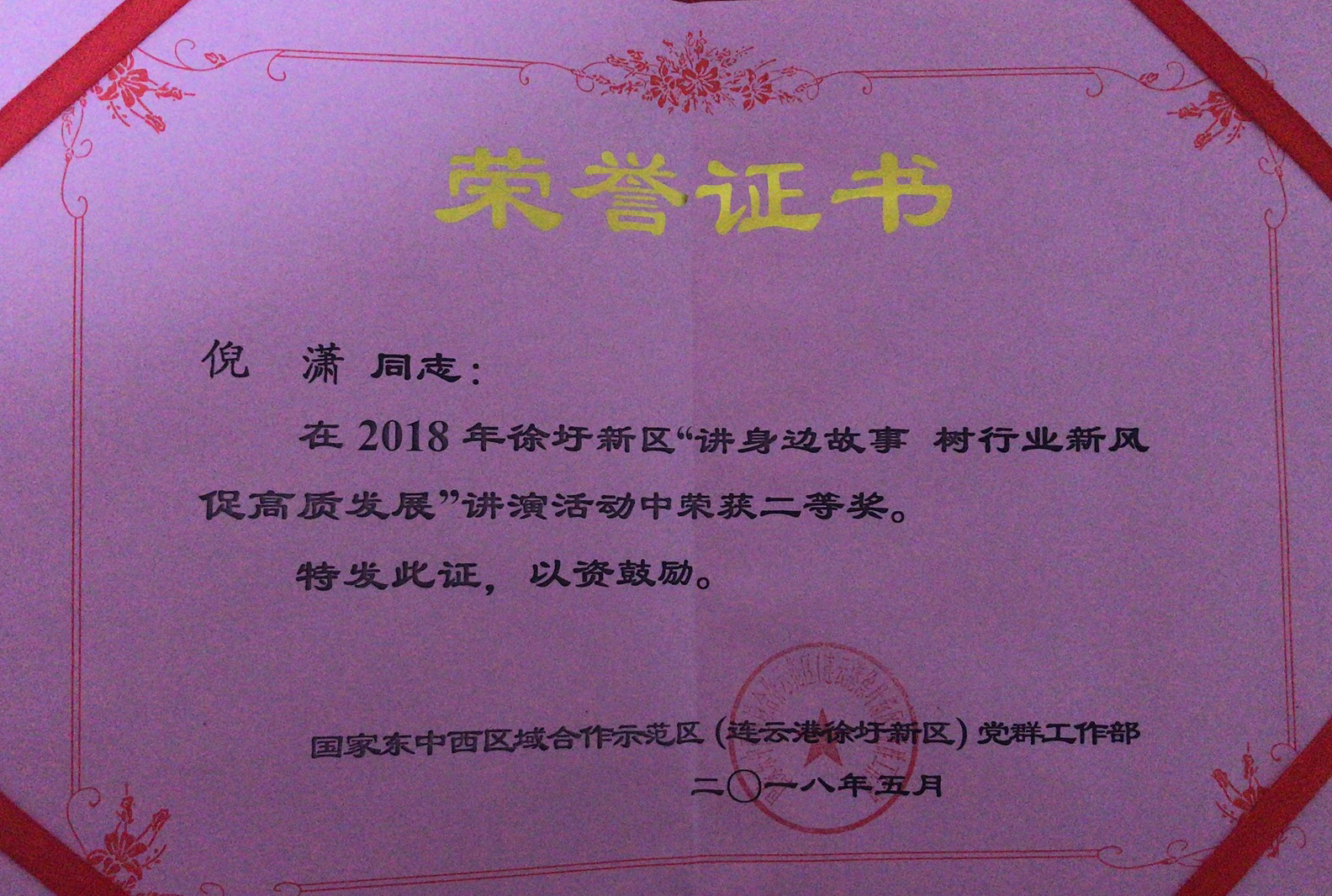 近日,徐圩新區(qū)舉辦“講身邊故事 樹行業(yè)新風(fēng) 促高質(zhì)發(fā)展”職工主題講演活動(dòng),經(jīng)過(guò)激烈角逐,東辛社區(qū)倪瀟在比賽中脫穎而出,榮獲本次比賽二等獎(jiǎng)。