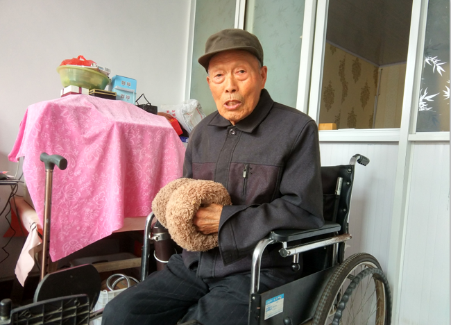 這名已經(jīng)91歲高齡的老人名叫楊文才,是江蘇農(nóng)墾淮海農(nóng)場建國前的離休老干部,因為抗美援朝,1951年23歲的楊文才毅然報名參軍,后因戰(zhàn)局的扭轉(zhuǎn),他從102師改編成農(nóng)建四師,來到淮海農(nóng)場屯墾戍邊。從1953年直到離休前,楊文才一直是單位的會計?,F(xiàn)在坐著輪椅來到藤架下休息聊天是他每天的必修課。