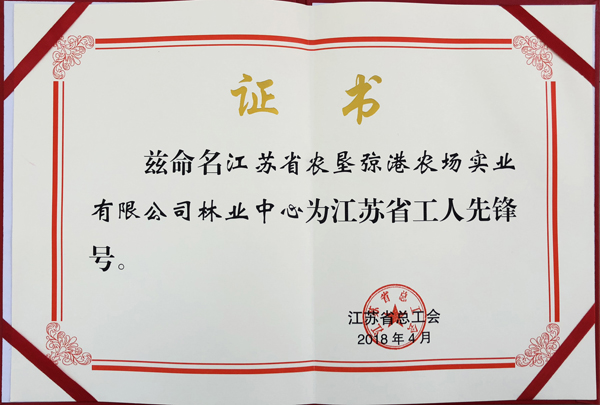 日前,江蘇省總工會授予?港農(nóng)場林業(yè)中心“江蘇省工人先鋒號”榮譽稱號。