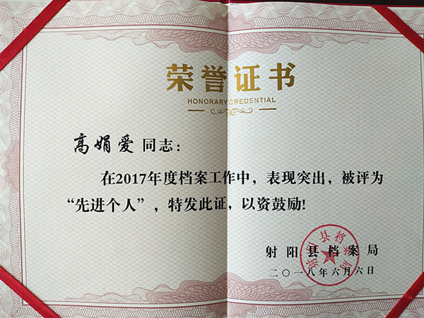 日前,射陽縣檔案局傳來喜訊,新洋農(nóng)場有限公司榮獲射陽縣2017年度檔案管理工作“先進(jìn)集體”稱號(hào),檔案管理員高娟愛榮獲2017年度檔案工作“先進(jìn)個(gè)人”。