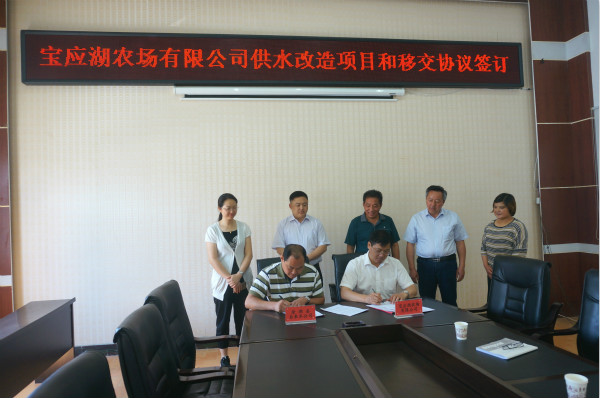 連日來,寶應(yīng)湖農(nóng)場(chǎng)有限公司積極與金湖縣自來水公司溝通對(duì)接,推進(jìn)公司內(nèi)供水質(zhì)量提升改造項(xiàng)目穩(wěn)步實(shí)施、移交協(xié)議的順利簽訂。6月13日,雙方在寶應(yīng)湖農(nóng)場(chǎng)有限公司會(huì)議室舉辦供水改造項(xiàng)目和移交協(xié)議簽訂儀式。農(nóng)場(chǎng)有限公司總經(jīng)理趙建坤,縣自來水公司經(jīng)理柏春陽及雙方相關(guān)部門負(fù)責(zé)人參加簽約儀式。