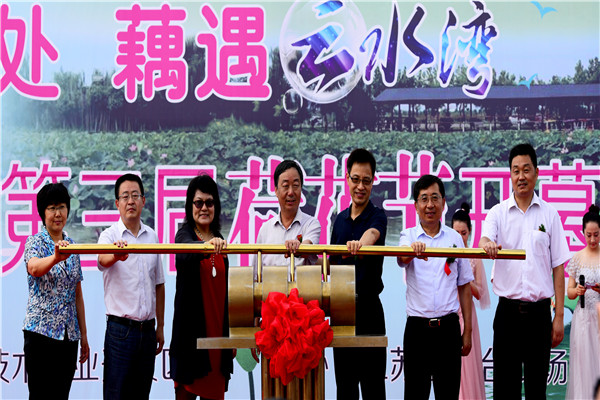 荷叢搖曳,蓮葉田田,風(fēng)姿各異的花朵或含苞待放,或亭亭玉立,或迎風(fēng)盛開,又到了荷花盛開的季節(jié)。7月21日上午由連云港市旅游局、連云港市高新區(qū)共同主辦,江蘇農(nóng)墾云臺農(nóng)場有限公司承辦的以“情歸荷處·藕遇云水灣”為主題的2018連云港第三屆“荷花節(jié)”正式開幕。省國資委第一監(jiān)事會主席李海洋、連云港市人大副主任董春科、江蘇農(nóng)墾集團公司黨委委員、總會計師劉克英等連云港市旅游、國土等有關(guān)領(lǐng)導(dǎo)、云臺領(lǐng)導(dǎo)班子全體成員及游客近萬人參加了開幕式。