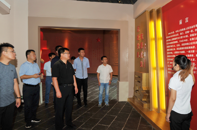 河北省塞北管理區的前身與淮海農場在歷史上有著較為深厚了淵源,1955年從兩個農場一個牧場合并組建的沽源農場的第一任場長,就是當年從農建四師調任過去的李承恩擔任的。為了了解淮海的軍墾傳統文化,白建軍一行在單祥忠等人的陪同下,參觀了農建四師陳列館,實地了解農建四師時期,軍墾戰士響應軍委主席毛澤東的號召,生產待命,建設農場的歷史,并通過農場公司領導和講解員的現場講述,讓白建軍一行真實體會到了農建四師時期那“艱苦奮斗,不怕困難,團結奮進,無私奉獻”的淮海精神