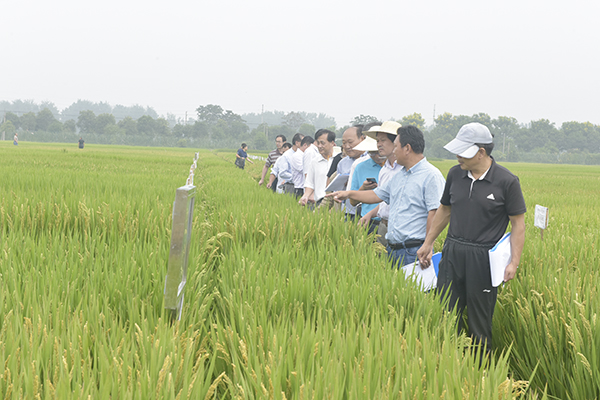 作為全國農墾良種展示示范基地,白馬湖常年承擔著國家和江蘇不同品種的區域試驗及新優品種的示范展示等任務。活動中,省種子管理站調研員翁為民首先致辭,明確了本次活動的目的意義,并重點從不同的角度出發,就對“好品種”的認知、認同提出了自己的見解和意見,強調要由研發人員、種子企業、生產單位、相關部門、糧食加工企業直至消費者各方協同,共促好品種的推出、推廣,力保好品種的實效、實惠。接著,在由部分省水稻品種審定專業委員會的委員或專家現場進行打分評比的基礎上,又通過大華育種研究院淮安研究所的負責同志和技術人員以及部分好品種企業的負責同志依次介紹參加“江蘇好品種”評比的各水稻品種的產量構成、抗性表現、米質特點等,再由與會代表作為評審團的一員,根據自己的考察觀摩結果,對照評分標準認真進行評比打分并積極投票,共同推舉了大家普遍認同的中稻“江蘇好品種”。