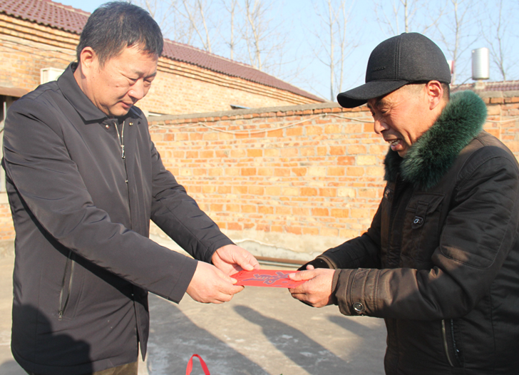 在離休干部鄭立才家中,賀在銳與老同志拉家常,話健康,詳細詢問他們的身體狀況和需要解決的困難與問題。認真傾聽他們的心聲,同時向他們通報了農場公司發展情況,虛心征求他的意見和建議,對他為農場公司發展做出的貢獻表示衷心感謝;希望他繼續關注農場公司發展并祝福他們新春快樂,身體健康,闔家幸福!