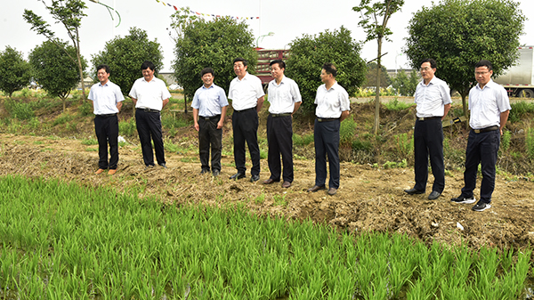 在先后考察了在田水稻的長勢長相,場部小城鎮環境整治及污水處理情況,利用閑置資源、引進優質種源試驗示范培育的美國紅櫟容器苗長勢情況,大華種業白馬湖分公司的夏熟種子收儲情況的基礎上,胡兆輝總經理對白馬湖今年以來的各項工作表示了肯定,對江蘇農墾經濟社會發展形勢和加大民生公益事業投入等政策進行了通報,對當前和下一步工作提出要求: