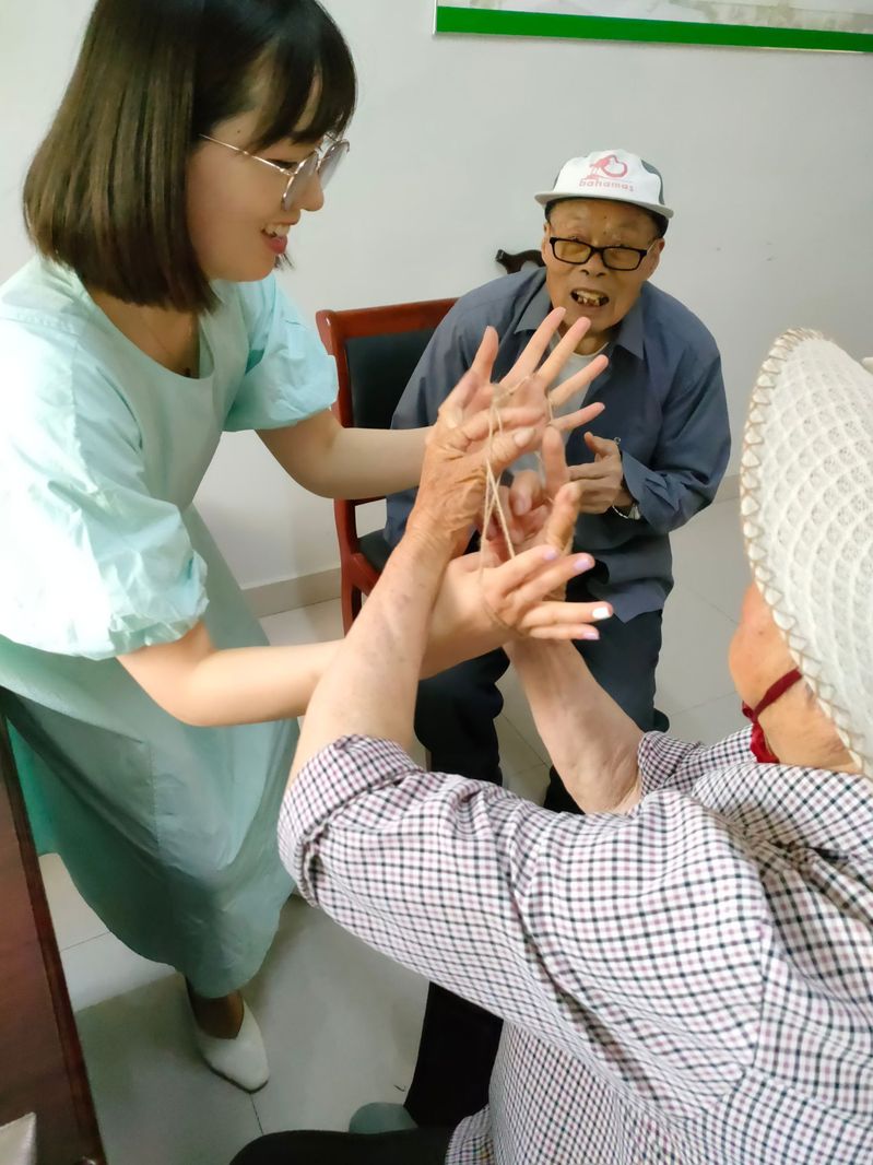 當天下午,工作人員在中心與老人玩起了翻花繩、唱童謠、猜謎語等活動,用獨特的方式重溫兒時的美好時光,追憶童年。“時間好像一下子回到了50年前,真是沒想到都這把年紀了還能過六一,上次居然還上了那個抖音,家里人看了都說外婆成明星了?!鳖櫮棠绦χ劬Σ[成一道線說道。“我們平時和小孩接觸,都是看他們玩。今天我們也成了主角,可以和你們一起玩,還給我們敲背捏腿,真是太高興了?!?/span>