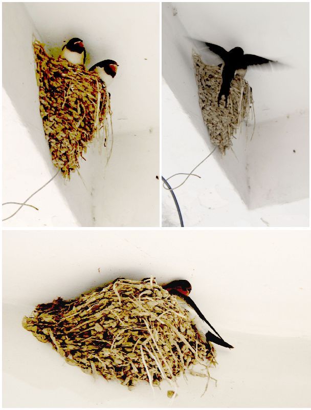 春天,燕子從南方飛來,成對的燕子銜來泥草在屋檐下做起了小窩,初夏或仲夏就孵化出了小燕子,每天有一只燕子守窩,一只燕子飛出去覓食銜回來喂小燕子。小燕子等食時把頭伸出窩外,張著黃黃的小嘴嘰嘰喳喳叫著,就像一曲動聽的小曲,引得住戶和路人駐足聆聽和觀望。看老燕子來回輕盈地飛舞,不時地停在窩前把所覓之食喂給小燕子,是一種享受,是一種陶醉。店主喜歡燕子在他的屋檐下做窩,說是能招來財運,故不允許任何人破壞燕窩的。