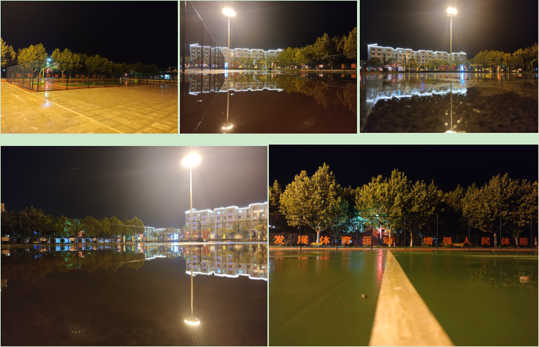 在淮海農(nóng)場的夜晚時分,我們在告別了忙碌的白天,利用周末休息的這段時間,在農(nóng)場的廣場中散步流連中,竟然發(fā)現(xiàn)農(nóng)場的夜晚也是這么的美。雨后的廣場,讓地面、天空與樓宇、燈光有效地融合起來,特別是雨水暫停或是細(xì)雨飄飄的間隙,廣場上、道路中很少有人走動的時候,眼前的風(fēng)景更是將各種元素揉合到了一起,在美的體驗(yàn)中加劇了農(nóng)場環(huán)境的靜謐。這時,你可以拿起手機(jī)多方位多角度地拍攝,你可以架起手機(jī)在這種氛圍中抖一抖,也可以上傳朋友圈,讓大家與你共同品味農(nóng)場的大好風(fēng)光,一定能將你的童心煥發(fā),令你度過一個愉快的夜晚。