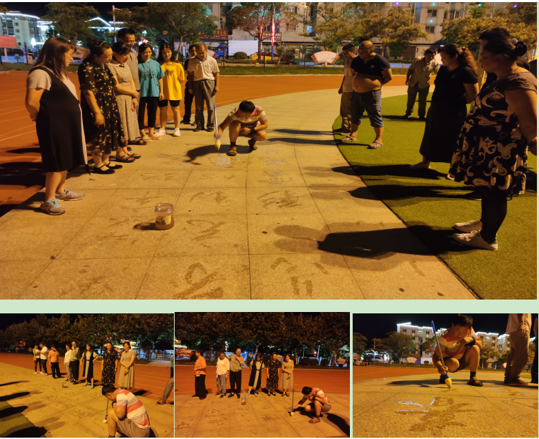 農場的職工居民看到他在寫字時,一些有書法功底的人也不免上去拿來筆,也在地上嘗試下寫字,并和他交流,感受在廣場地面上寫字的樂趣。