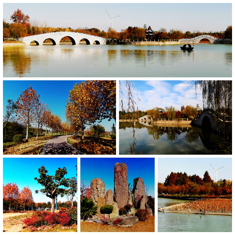 走進新洋金龍灣文化生態園,但見那火紅的楓葉、金黃的梧桐葉、棕色的中山杉也、鵝黃的銀杏葉.....色彩斑斕,絢麗多彩,好似打翻的調色板,在陽光的照射下中顯得格外的靚麗、養眼。