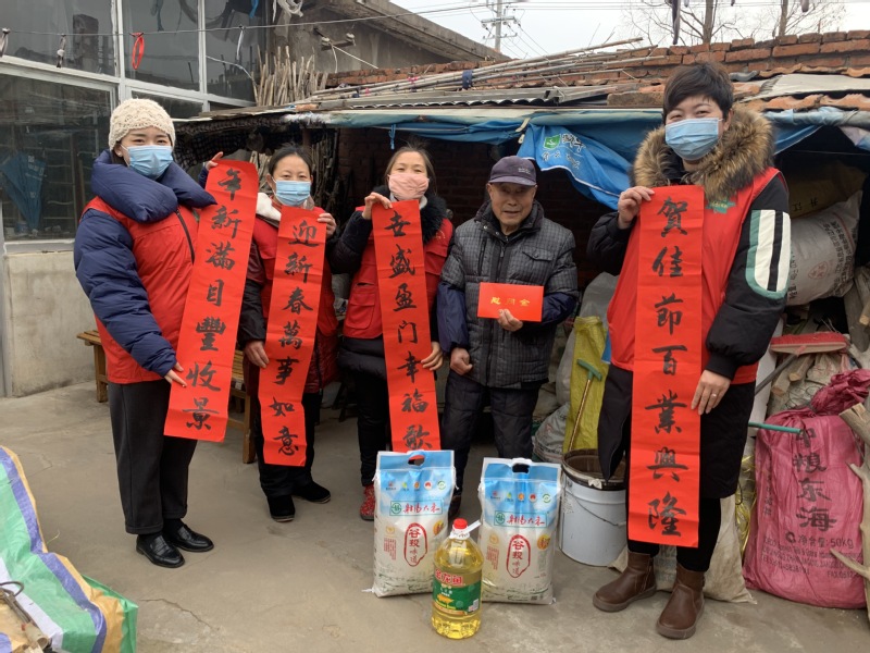 活動中,朱玉兵全神貫注地壓紙、沾墨、起筆、收筆,一起一落之間,一幅幅楷書、行書、草書大紅春聯(lián)完美呈現(xiàn),濃濃的墨香增進(jìn)了黨員、老人們間的鄰里之情。當(dāng)我們捧出春聯(lián)遞給轄區(qū)老年朋友時(shí),他們?nèi)绔@至寶,一個(gè)個(gè)臉上樂開了花。一位老同志說:“ 這樣的春聯(lián)貼在門上感覺更有意義。”送春聯(lián)的同時(shí),中心工作人員還積極向居民宣傳疫情防控知識,提醒居民戴口罩、不聚眾、勤洗手,若有外地返場人員要及時(shí)向社區(qū)報(bào)備等內(nèi)容,全力提升轄區(qū)居民的安全感、幸福感、獲得感。