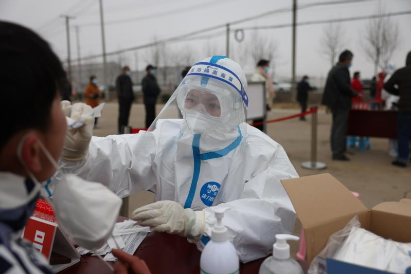 310日早上9點左右, 在崗埠農科所核酸檢測點,崗埠醫院的醫護人員刁靜靜累得趴在工作臺上,出現了頭暈、嘔吐現象,可她還堅持在工作崗位,在同事和領導的關心和勸說下,她才不舍地離開工作崗位。