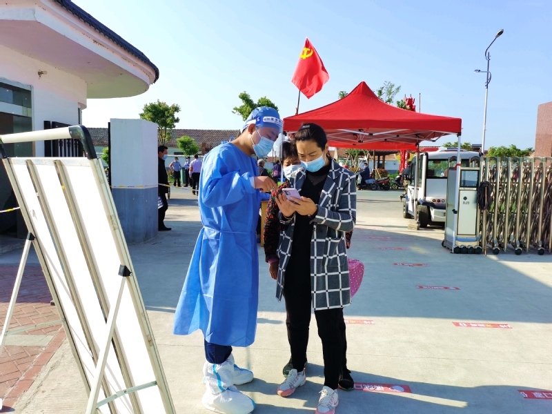 我在崗,您省心。“能做一點是一點,疫情防控是我們大家共同的事。”姜明亮是社區機關黨支部一名預備黨員,當他得知5月3日夜班值班人員臨時有事便主動請纓,從晚上八點到次日早晨八點,他把承諾當做責任來踐行。5月4日農場組織全員核酸檢測,他一掃夜班值守的疲憊,直奔迎湖健身廣場核酸采樣點,背上消毒機進行現場環境消殺。劉圩小學采樣點,只見一位“小藍”手拿擴音喇叭對著居民喊話:“病毒無情人有情,健康連著你我他,請大家保持一米線?!苯涍^仔細辨認大家才認出她是社區財務劉玉?!捌綍r聲音不大,維持秩序時聲音倒不小。”大家紛紛為她點贊?!澳茫埑鍪旧矸菪畔ⅰ!比謭龉ぷ魅藛T劉昕身穿白色防護服,正忙著采集身份信息。朝陽下,汗水浸透了衣衫、曬紅了臉頰,他卻沒有一聲抱怨。當天他共采集490個信息,這也是他連續五次完成三分場采集點數據采集任務。