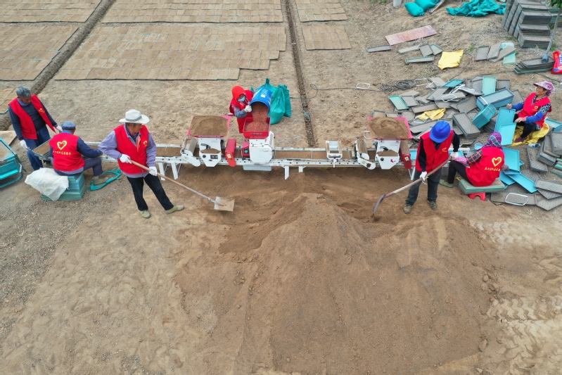 寶應湖志愿服務在田間,機插育秧如火如荼