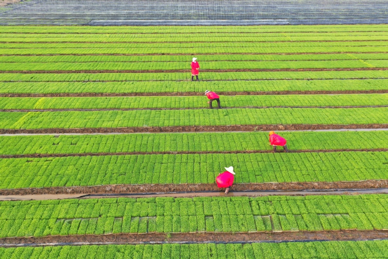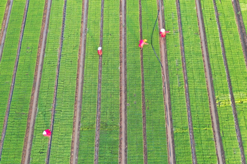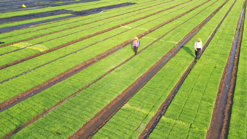 秧好半熟稻苗好產量高521日,小滿,寶應湖農場三生產區職工正在進行小秧管理。