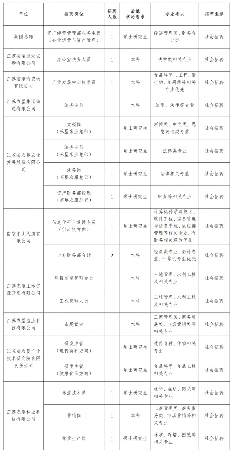 江蘇農墾2025年秋季集中招聘公告(一)