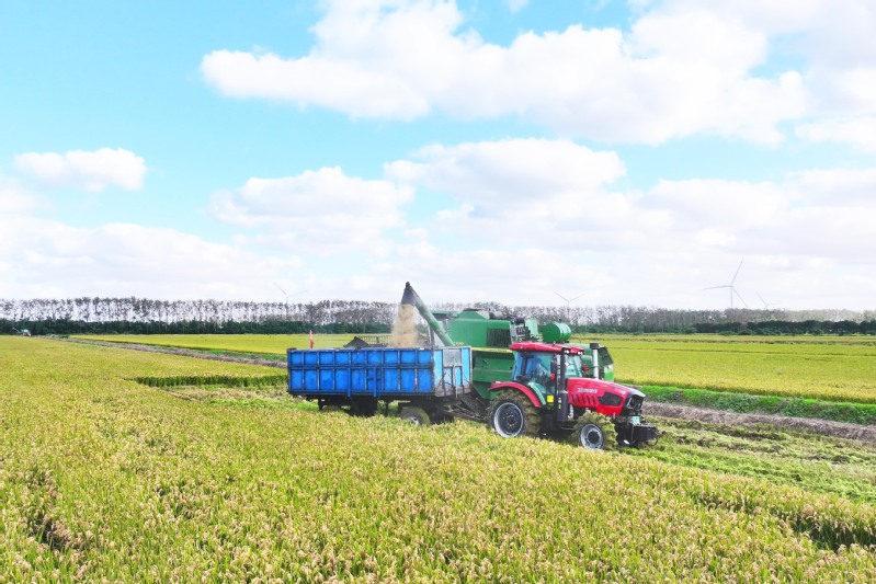 學習強國|鹽城射陽:晴日搶收戰金秋 8萬畝水稻收割全速推進