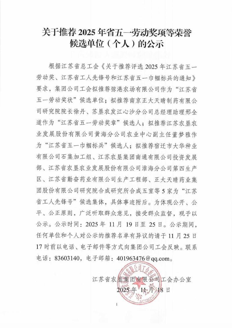 關于推薦2025年省五一勞動獎項等榮譽候選單位(個人)的公示