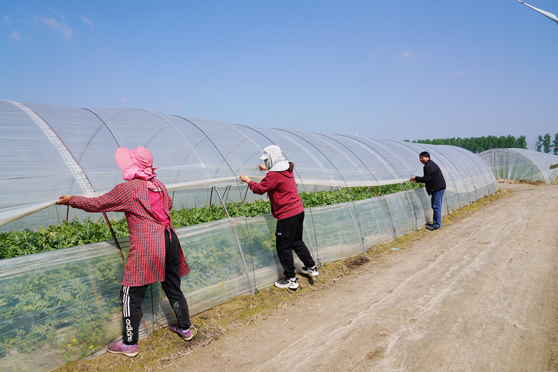田間,種植戶江月香正在給瓜棚揭膜透氣,看到陳主任連聲感謝說,“要不是昨天你幫忙帶人將瓜棚整理好,我和隔壁田的老單就得損失好幾十萬元了。”隔幾條田正在西瓜大棚里授粉的老單聽到陳主任的說話聲,連忙從棚里走來說感謝。4月29日晚,受東北冷渦影響,8-10級的雷暴大風夾雜著冰雹襲擊農場,第三生產區12連的西瓜生產基地有十多家西瓜種植戶受到不同程度的損害,其中位于風口處的小江和老單家有近40個大棚受損,望著整條田被風刮飛的大棚,江月香急得直掉眼淚。天氣報告預測還有大風和雷暴發生,當前全場都在賣西瓜,用工緊張,半天沒找到幾個幫忙的人,下雨前大棚不整理好,眼看就要到手的收成就全完了。陳主任急忙打電話組織人員,并將生產區管理人員喊到田間,一起幫助拉膜,束繩,直到傍晚才將受損田塊全部整理好,然后將生產區所有種植戶都一家一家全部查看一遍他才踏上回家的路。