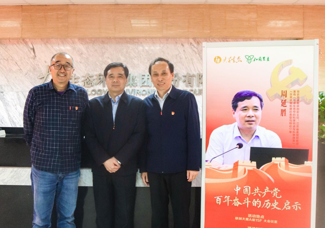 2021年4月22日下午,江蘇省農(nóng)墾投資管理有限公司黨支部和大千生態(tài)環(huán)境集團股份有限公司黨支部聯(lián)合組織黨史學(xué)習(xí)活動,特別邀請了中共江蘇省委黨校黨史黨建教研部副主任周延勝教授為黨員們作《中國共產(chǎn)黨百年奮斗的歷史啟示》主題講座。