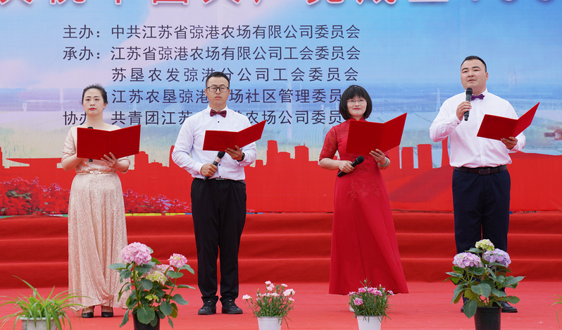 五月,瓜果飄香的弶農(nóng)處處充滿勃勃生機(jī)。5月12日,弶港農(nóng)場舉辦“永遠(yuǎn)跟黨走 啟航新征程”文藝匯演,隆重慶祝中國共產(chǎn)黨成立100周年。鹽城市委宣傳部部務(wù)委員、文明辦主任陳中才,鹽城農(nóng)墾事業(yè)管理辦公室主任徐均,東臺市市委宣傳部副部長楊俊民,三倉鎮(zhèn)黨委書記袁明、頭灶鎮(zhèn)黨委書記楊愛清,三倉鎮(zhèn)各村等領(lǐng)導(dǎo),公司領(lǐng)導(dǎo)班子成員、全場管理人員、受表彰先進(jìn)、駐場單位主要負(fù)責(zé)人、歷屆勞模、農(nóng)場老領(lǐng)導(dǎo)及老黨員代表參加活動,活動由公司黨委副書記王強(qiáng)主持。