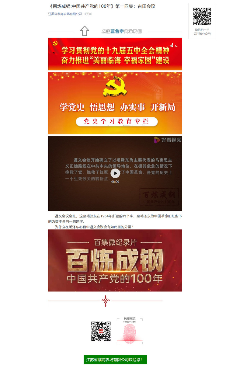 自黨史學習教育啟動以來,臨海農場公司黨委積極貫徹落實習近平總書記關于開展黨史學習教育的重要講話精神,利用多媒體平臺,打造黨史學習教育媒體矩陣,引導職工群眾學黨史、悟思想、辦實事、開新局,為建黨100周年獻禮。