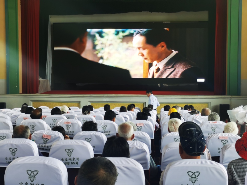 “下午來看看電影真好!禮堂裝修后干凈整潔,新安裝的電子屏播放效果好,聲音大,圖像清楚。”寶應湖農場公司迎湖居委會85歲職工胥福宏開心地說。