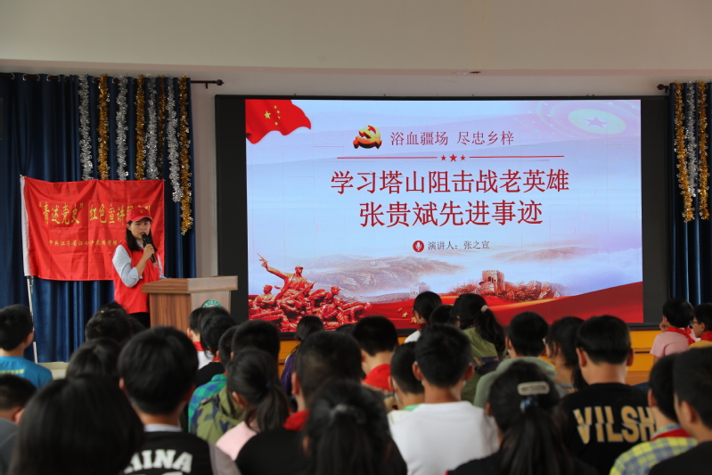 活動現場,志愿者給同學們講述了塔山阻擊戰老英雄——張貴斌的感人事跡,教育引導青少年學生從小樹立“知史愛黨,知史愛國”的高尚情懷,堅定共產主義理想信念,熱愛黨、熱愛祖國、熱愛人民,堅決做到聽黨話、跟黨走,讓紅色精神代代相傳。同學們時而認真聆聽,時而專心地做筆記,表現出濃厚熱情。