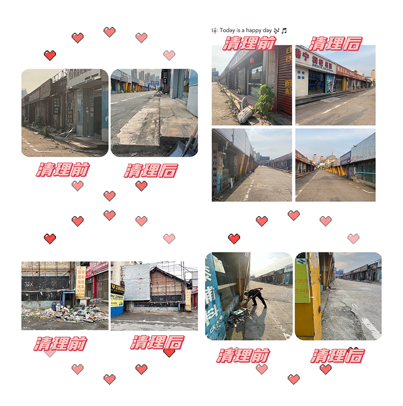 成立服務企業志愿隊,與企業共渡難關。市場租賃是金橋公司的主營收入,自今年1月建材市場因安全隱患嚴重關閉以來,這個本就不富裕的“大家庭”又迎來了新的挑戰。面對清租后市場內建筑垃圾清理的高額費用,6月16日,辦實事志愿服務隊正式啟動,黨委書記陳海斌、總經理裴書忠攜領導班子成員擼起袖子帶頭干,帶領著志愿服務隊共同清掃市場垃圾。炎炎夏日,烈日當頭,志愿隊的成員絲毫不受影響,不怕苦、不怕臟、不怕累,清理了一車又一車的垃圾,不論是刮風下雨、還是高溫暴曬,都阻擋不了志愿服務隊的決心與步伐,看著再度恢復整潔、干凈的道路,看著清理前后的差距對比,同志們揮灑汗水,露出滿足的笑容。另外,志愿服務隊自發承擔起墾米油的上下力和運輸工作,將一袋袋米、一箱箱油運往門店,極大節約了從倉庫至門店的力資費和運輸成本。