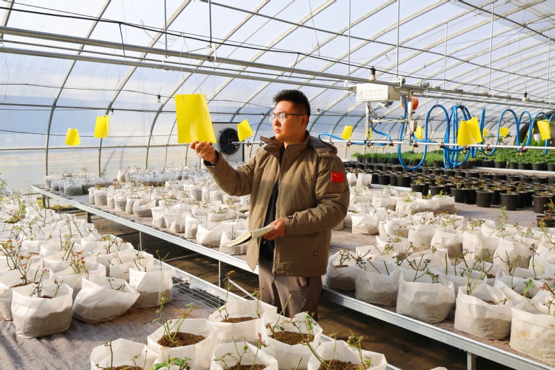 12月9日,江蘇農墾崗埠農場的科技育苗大棚,工作人員對今年新引進栽植的盆栽月季、玫瑰花苗精準修剪花苗的枯枝、弱枝,查看病蟲害發生情況,助力盆栽花苗平穩過冬。