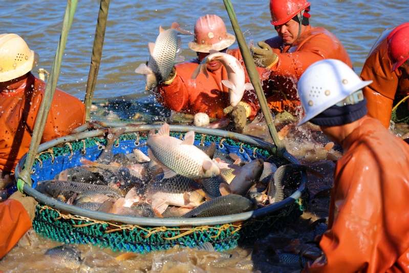 隨著2026年元旦臨近,水產市場需求量逐漸增大,崗埠農場積極做好鮮魚捕撈銷售工作,切實滿足節日市場需求。圖為農場加緊拉網捕撈鯉魚、花鰱、白鰱等各種鮮魚,準備供應云南昆明、山東濟寧等多地市場。