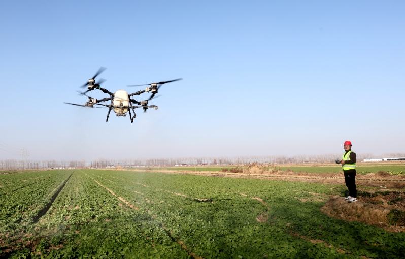 蘇墾農發新曹分公司立足小麥、油菜生長特性,以“保苗越冬、提質增效”為核心目標,通過“苗情監測精準化+技術指導常態化+作業服務智能化”,扎實推進冬季田間管護各項工作,全力守護全年農業生產成果。圖為植保無人機進行農藥噴灑作業。