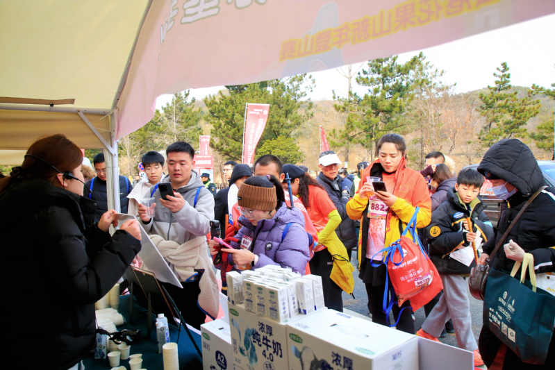 元旦期間,蘇墾乳業以“營養陪伴,活力開年”為主題,在連云港展開了一場線上線下聯動的品牌推廣活動。圖為蘇墾乳業在花果山新年登山賽現場設立品牌推廣補給站。